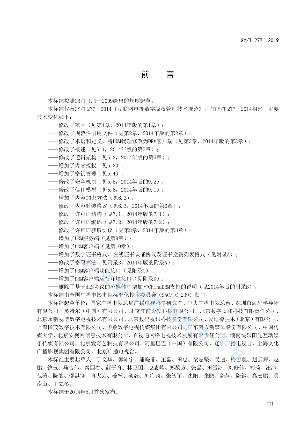 国家广播电视总局广播电视科学研究院、中央广播电视总台、深圳市海思半导体有限公司、英特尔(中国)有限公司、北京江南天安科技有限公司、北京数字太和科技有限责任公司、北京永新视博数字电视技术有限公司、北京数码视讯科技股份有限公司、爱迪德技术(北京)有限公司、上海国茂数字技术有限公司、华数数字电视传媒集团有限公司、广东南方新媒体股份有限公司、中国传媒大学、北京安视网信息技术有限公司、百视通网络电视技术发展有限责任公司、湖南快乐阳光互动娱乐传媒有限公司、北京爱奇艺科技有限公司、阿里巴巴(中国)有限