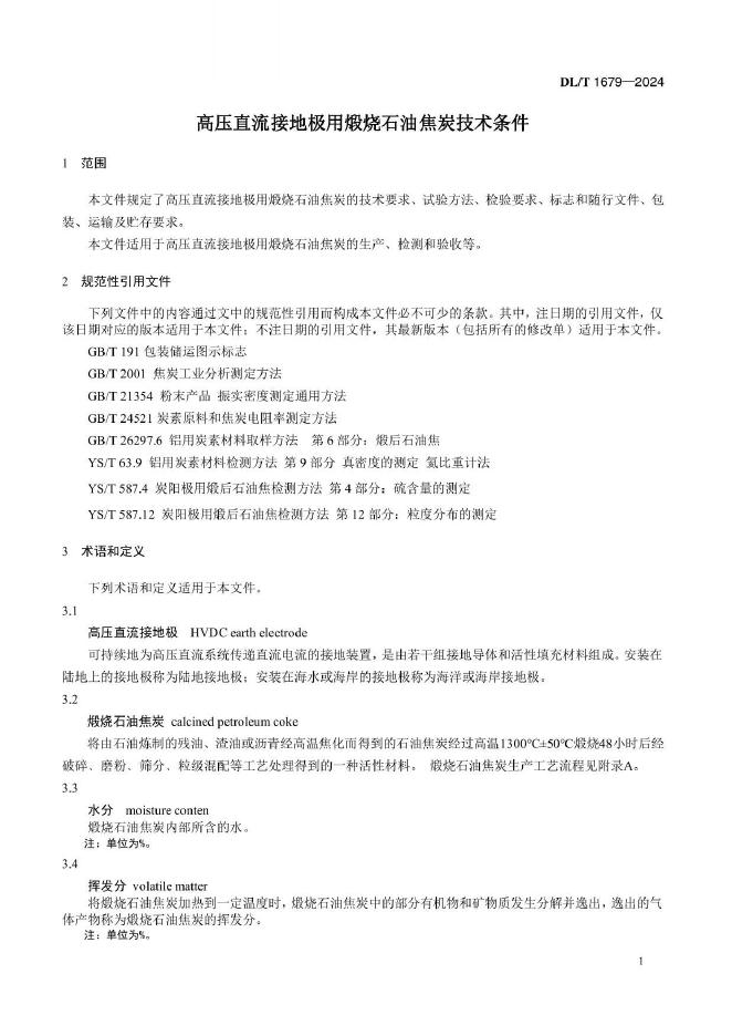 DL/T 1679-2024 高压直流接地极用煅烧石油焦炭技术条件