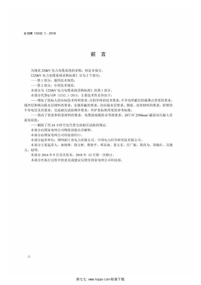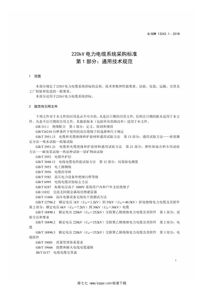 Q/GDW 13242.1-2018 220kV电力电缆采购标准 第1部分:通用技术规范
