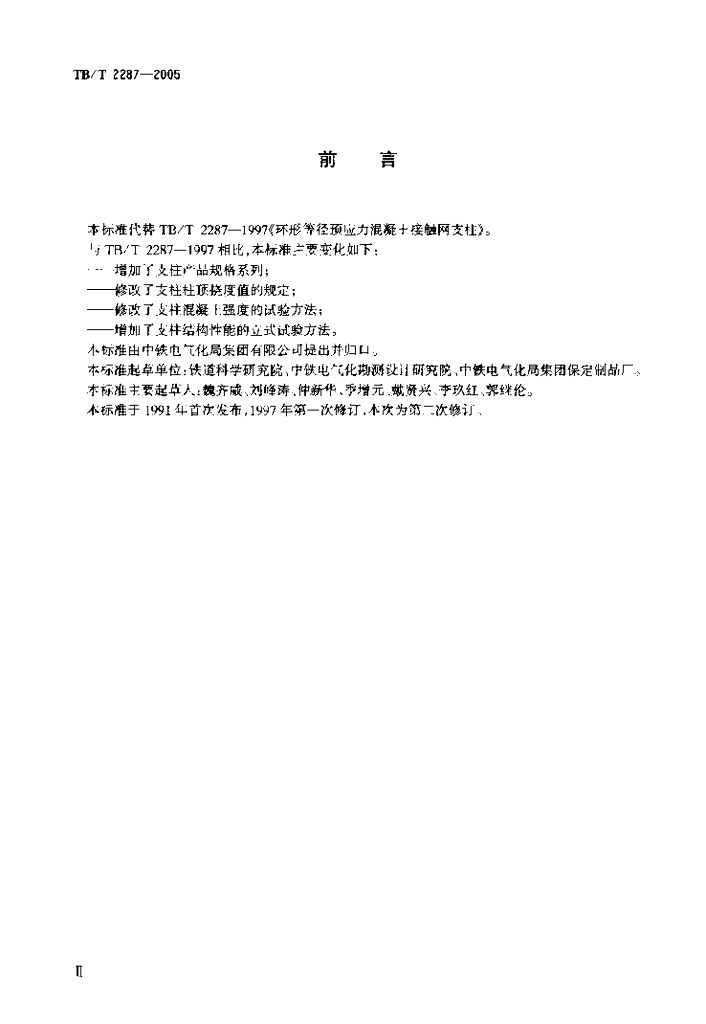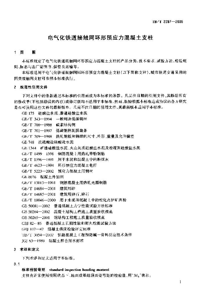 TB/T 2287-2005 电气化铁路接触网环形预应力混凝土支柱