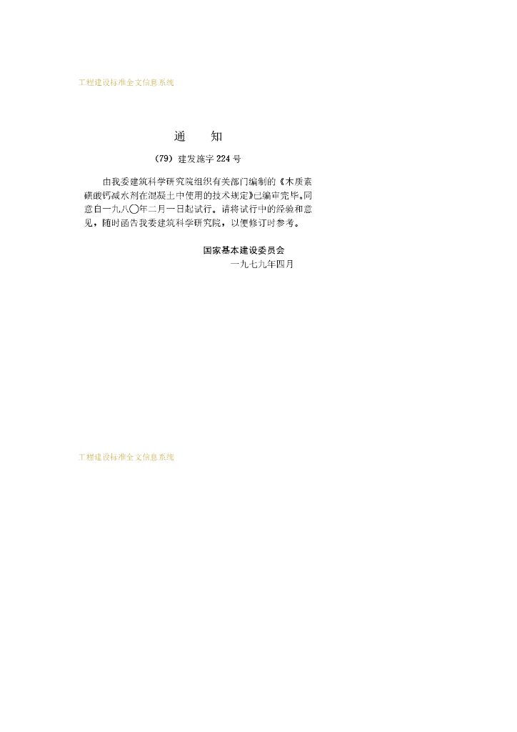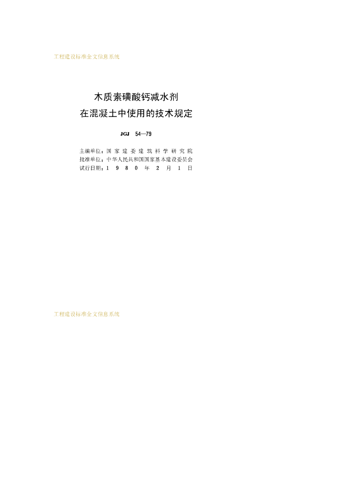 JGJ 54-1980 木质素磺酸钙减水剂在混凝土中使用的技术规定