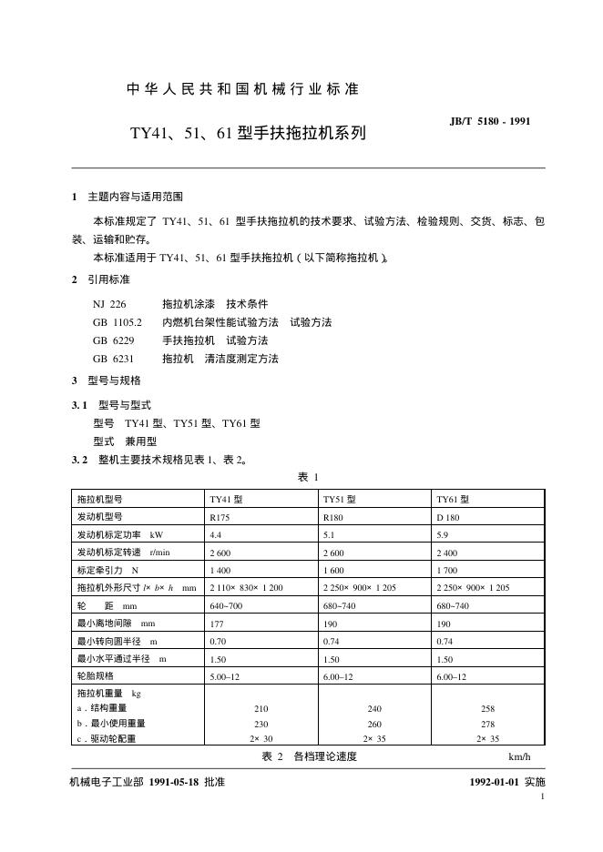 JB/T 5180-1991 TY41、51、61型手扶拖拉机系列