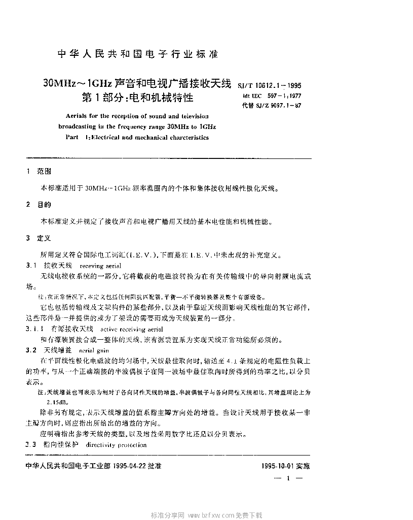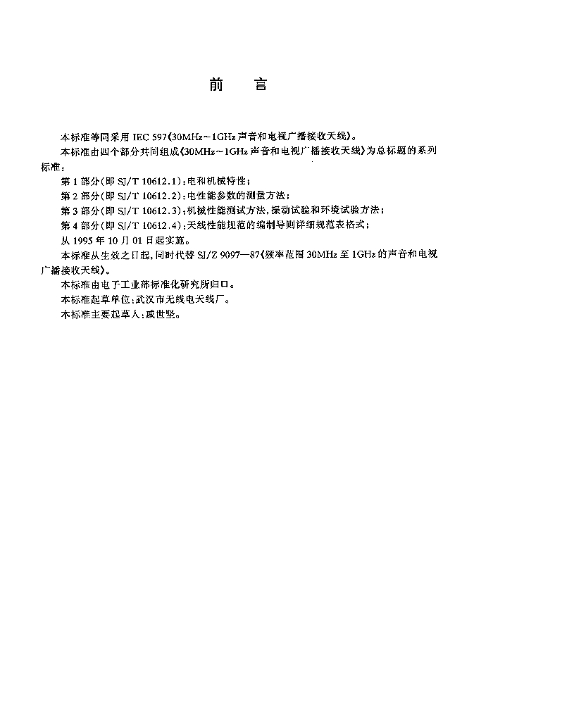 SJ/T 10612.1-1995 30MHz~1GHz声音和电视广播接收天线