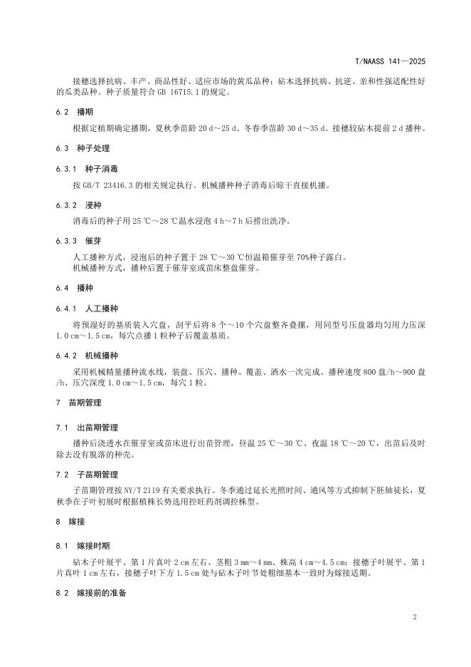 T/NAASS 141-2025 黄瓜贴接育苗技术规程