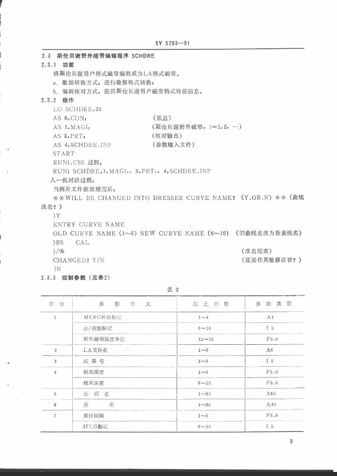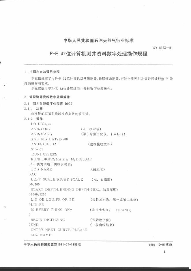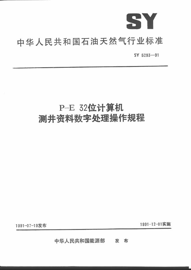 SY 5293-1991 P-E32位计算机测井数字处理操作规程