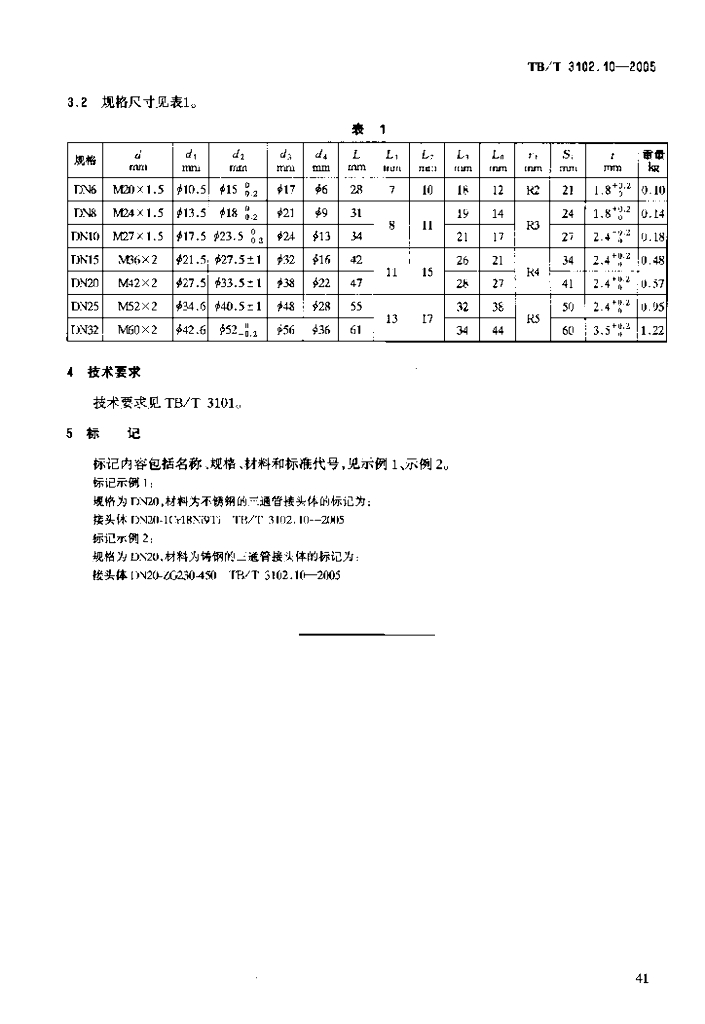 TB/T 3102.10-2005 机车车辆用曲面卡套式管接头 第10部分:三通管接头体