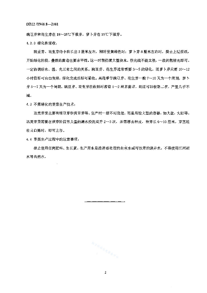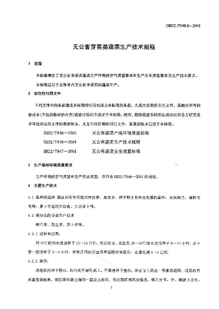 DB22/T 948.8-2001 无公害芽菜类蔬菜生产技术规程