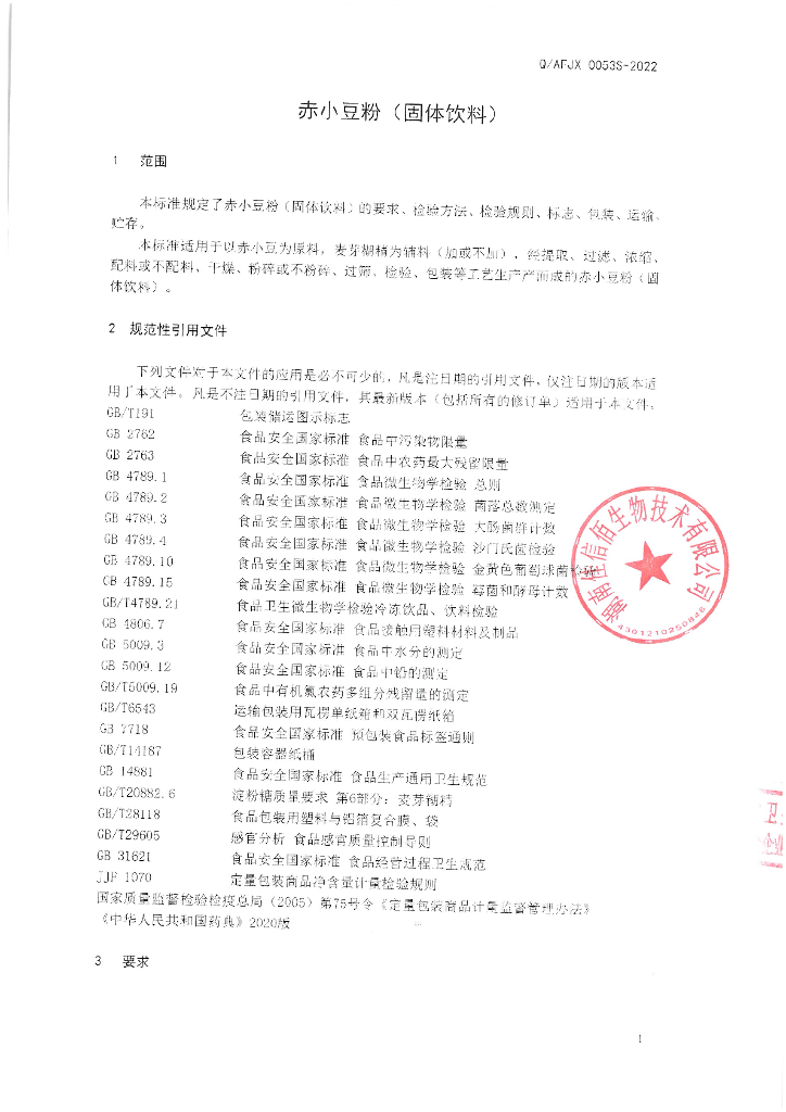 Q/AFJX 0053S-2022 赤小豆粉(固体饮料)
