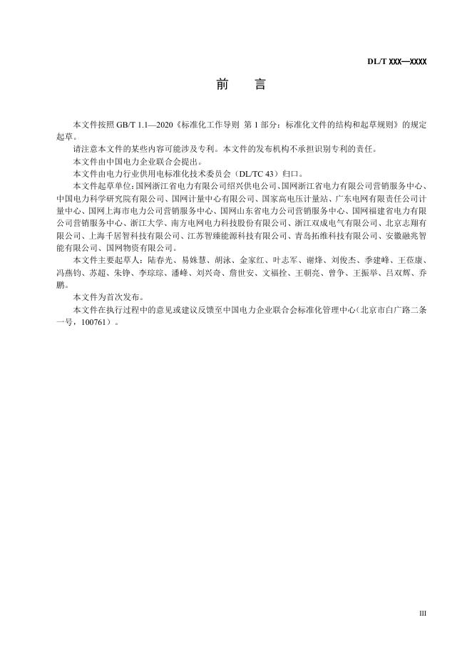 本文件起草单位:国网浙江省电力有限公司绍兴供电公司、国网浙江省电力有限公司营销服务中心、中国电力科学研究院有限公司、国网计量中心有限公司、国家高电压计量站、广东电网有限责任公司计量中心、国网上海市电力公司营销服务中心、国网山东省电力公司营销服务中心、国网福建省电力有限公司营销服务中心、浙江大学、南方电网电力科技股份有限公司、浙江双成电气有限公司、北京志翔有限公司、上海千居智科技有限公司、江苏智臻能源科技有限公司、青岛拓维科技有限公司、安徽融兆智能有限公司、国网物资有限公司。