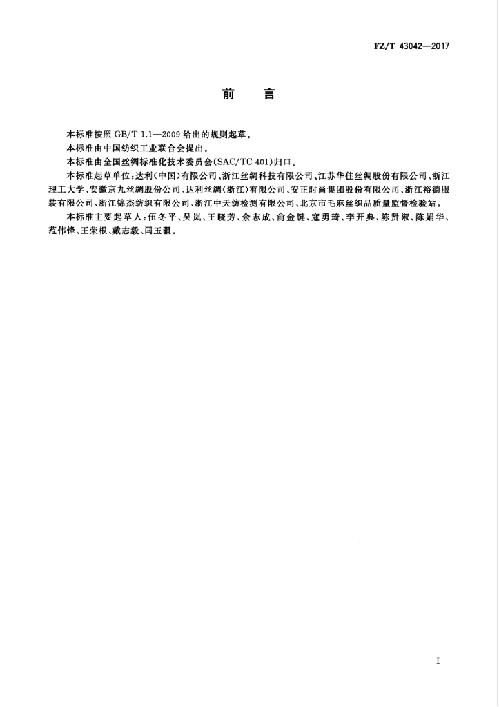 达利(中国)有限公司、浙江丝绸科技有限公司、江苏华佳丝绸股份有限公司、浙江理工大学、安徽京九丝绸股份公司、达利丝绸(浙江)有限公司、安正时尚集团股份有限公司、浙江裕德服装有限公司、浙江锦杰纺织有限公司、浙江中天纺检测有限公司、北京市毛麻丝织品质量监督检验站