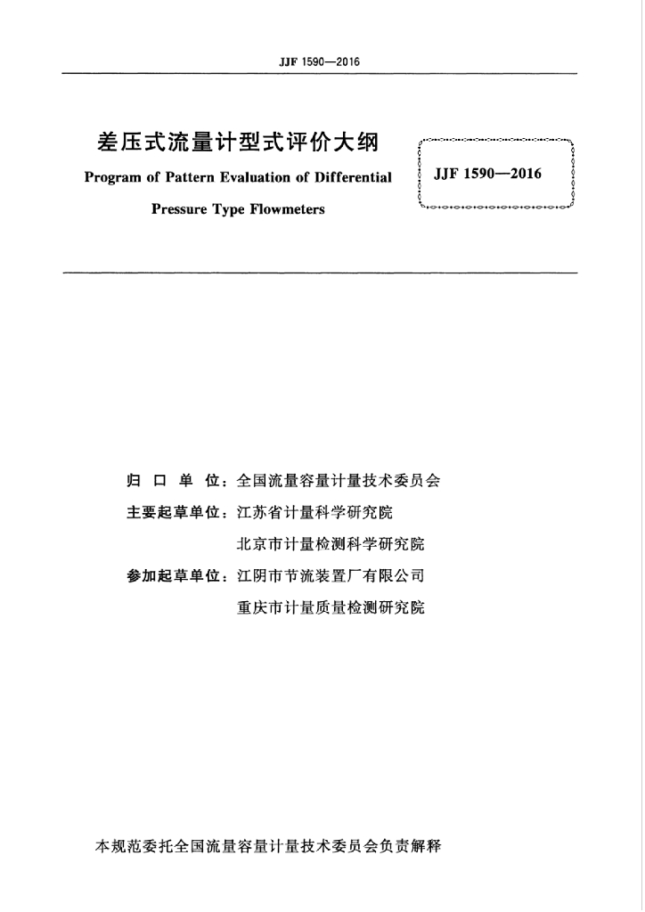 江苏省计量科学研究院、北京市计量检测科学研究院、江阴市节流装置厂有限公司、重庆市计量质量检测研究院
