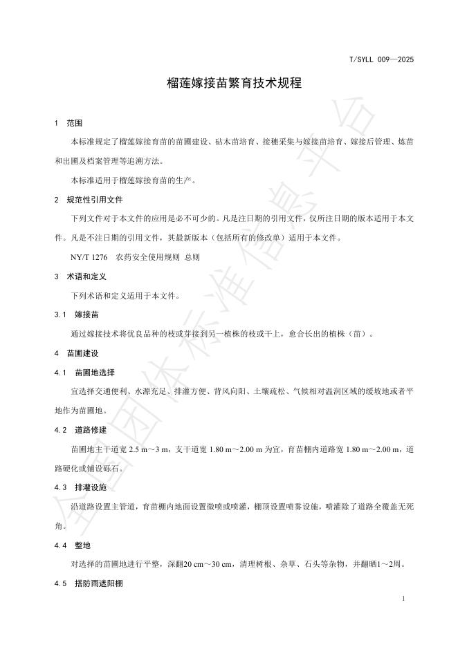 T/SYLL 009-2025 榴莲嫁接苗繁育技术规程