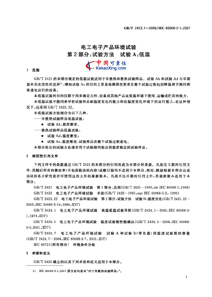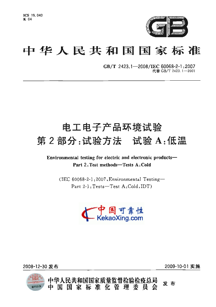 GB/T 2423.1-2008 电工电子产品环境试验 第2部分:试验方法试验A:低温