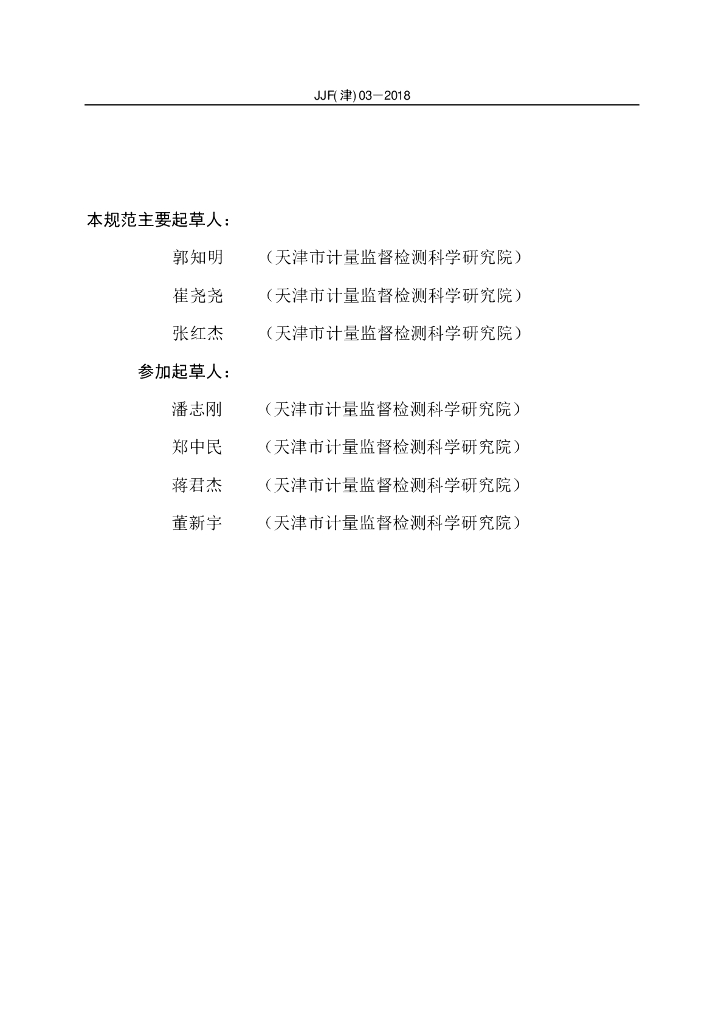 郭知明(天津市计量监督检测科学研究院)、崔尧尧(天津市计量监督检测科学研究院)、张红杰(天津市计量监督检测科学研究院)、潘志刚(天津市计量监督检测科学研究院)、郑中民(天津市计量监督检测科学研究院)、蒋君杰(天津市计量监督检测科学研究院)、董新宇(天津市计量监督检测科学研究院)