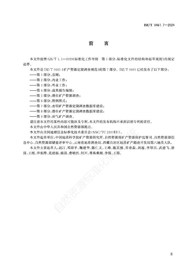 DZ/T 0461.7-2024 矿产资源定期调查规范 第7部分:查明矿产资源定期调查数据库建设