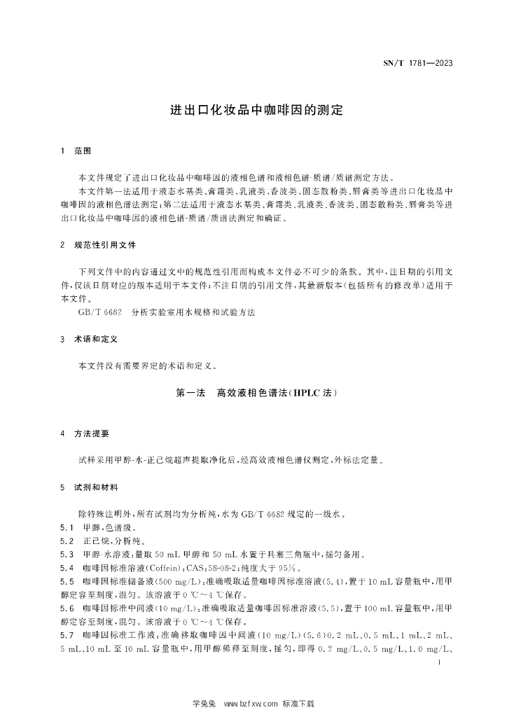 SN/T 1781-2023 进出口化妆品中咖啡因的测定
