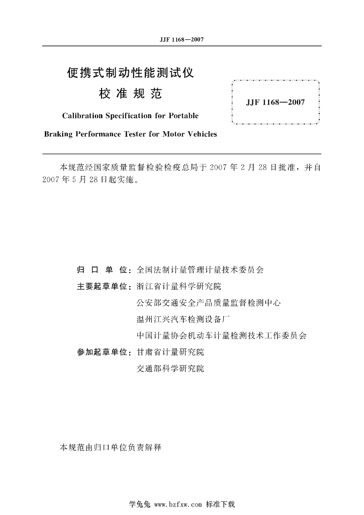 浙江省计量科学研究院、公安部交通安全产品质量监督检测中心、温州江兴汽车检测设备厂、中国计量协会机动车计量检测技术工作委员会、甘肃省计量研究院、交通部科学研究院