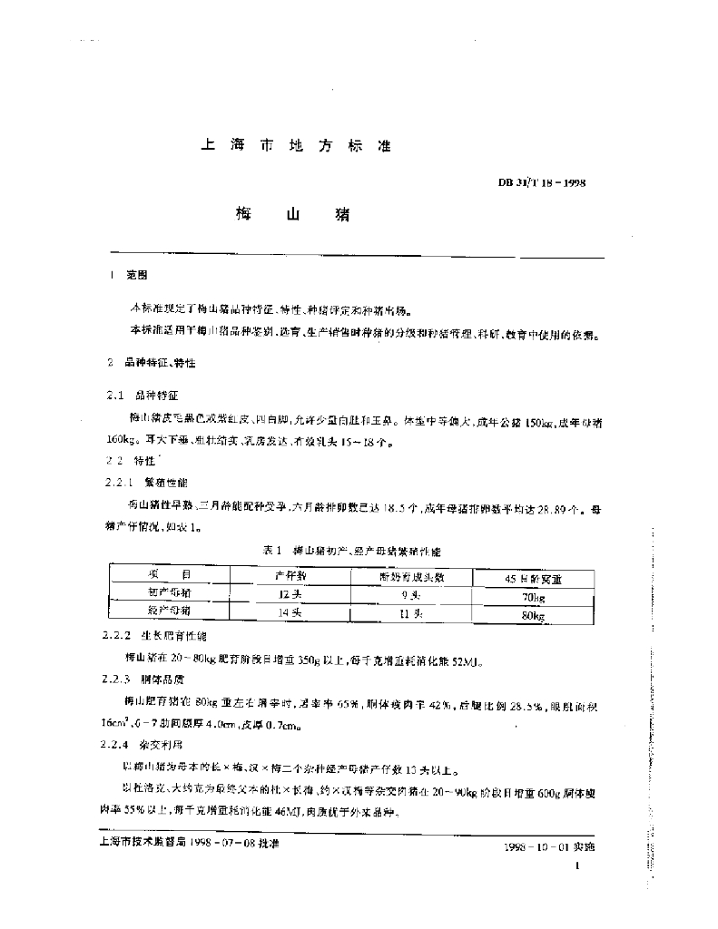 DB31/T 18-1998 梅山猪