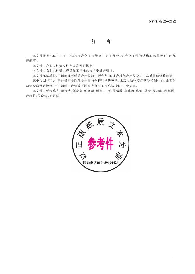 中国农业科学院农产品加工研究所、农业农村部农产品及加工品质量监督检验测试中心(北京)、中国计量科学院化学计量与分析科学研究所、北京市动物疫病预防控制中心、山西省动物疫病预防控制中心、新疆生产建设兵团畜牧兽医工作总站,浙江工业大学