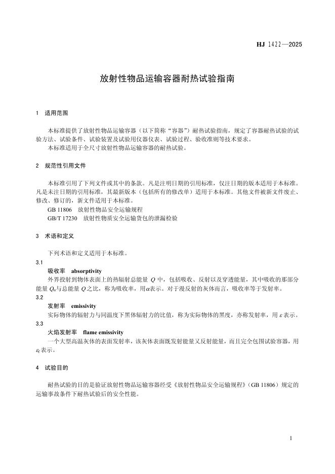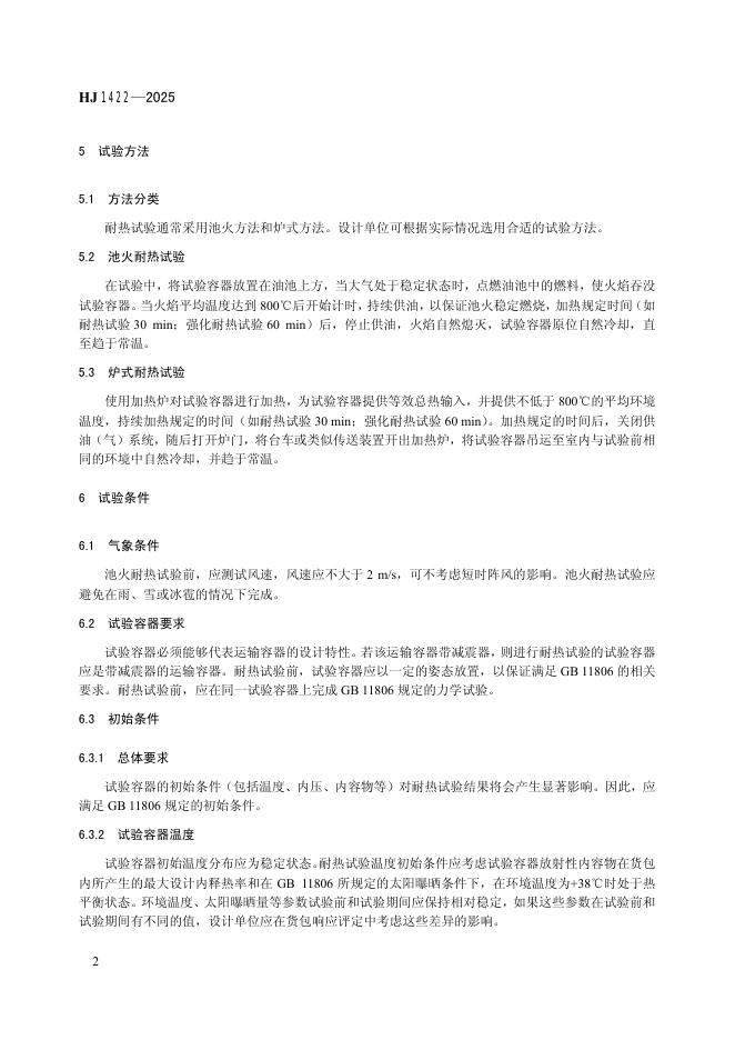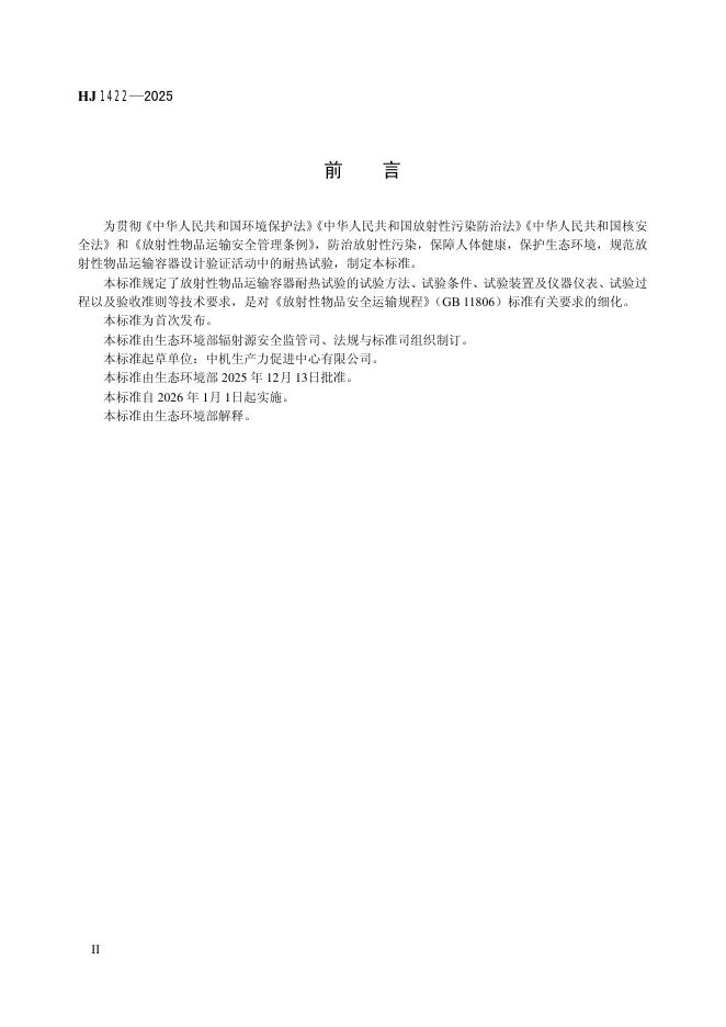 HJ 1422-2025 放射性物品运输容器耐热试验指南