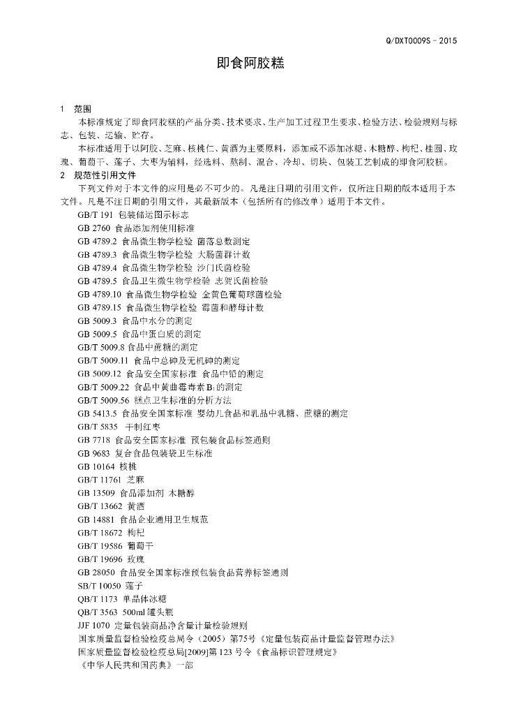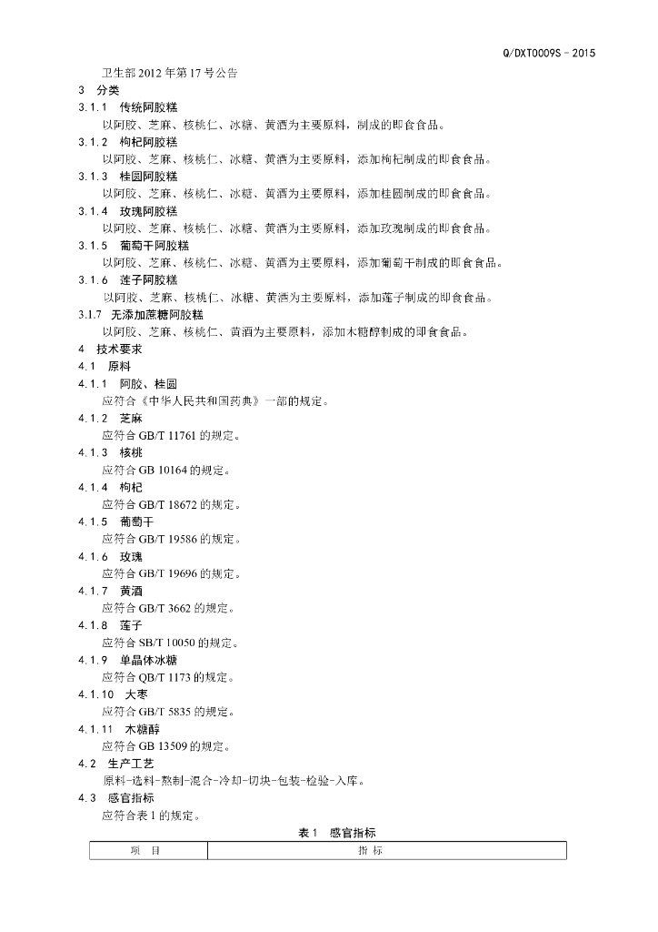 Q/DXT 0009S-2015 山东德兴堂阿胶制品有限公司 即食阿胶糕