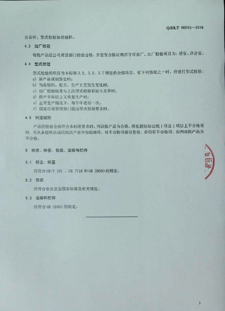 Q/HLT 0001S-2018 畜、禽肉制品