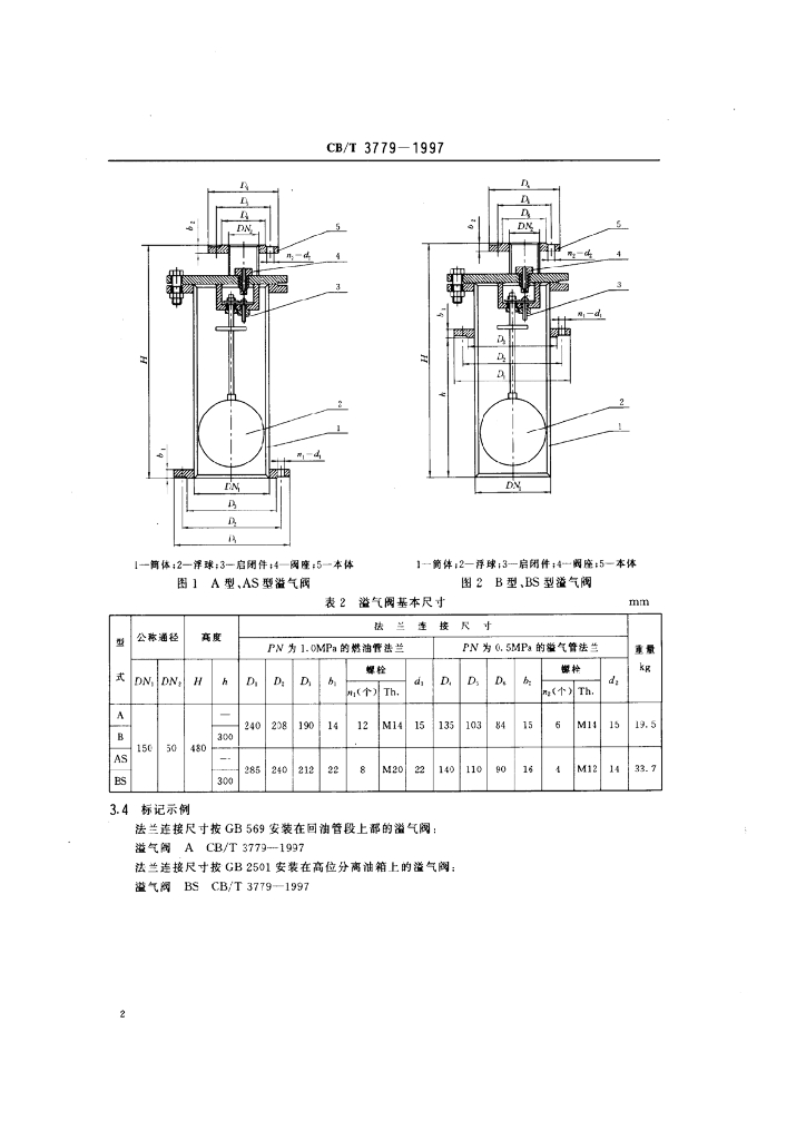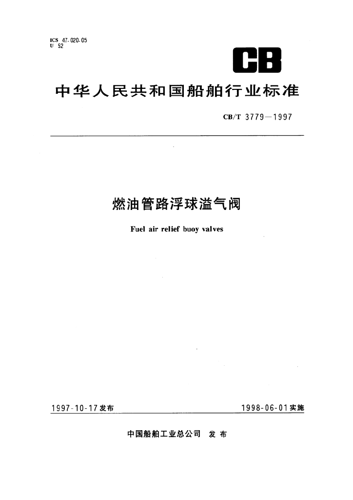 CB/T 3779-1997 燃油管路浮球溢气阀