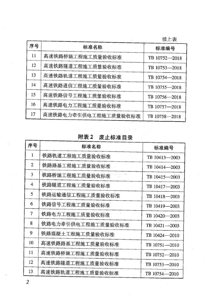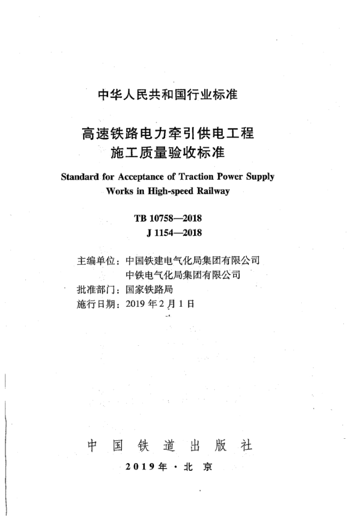 TB 10758-2018 高速铁路电力牵引供电工程施工质量验收标准