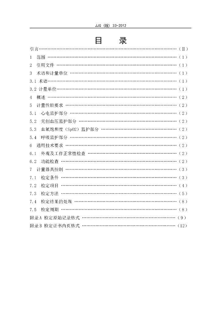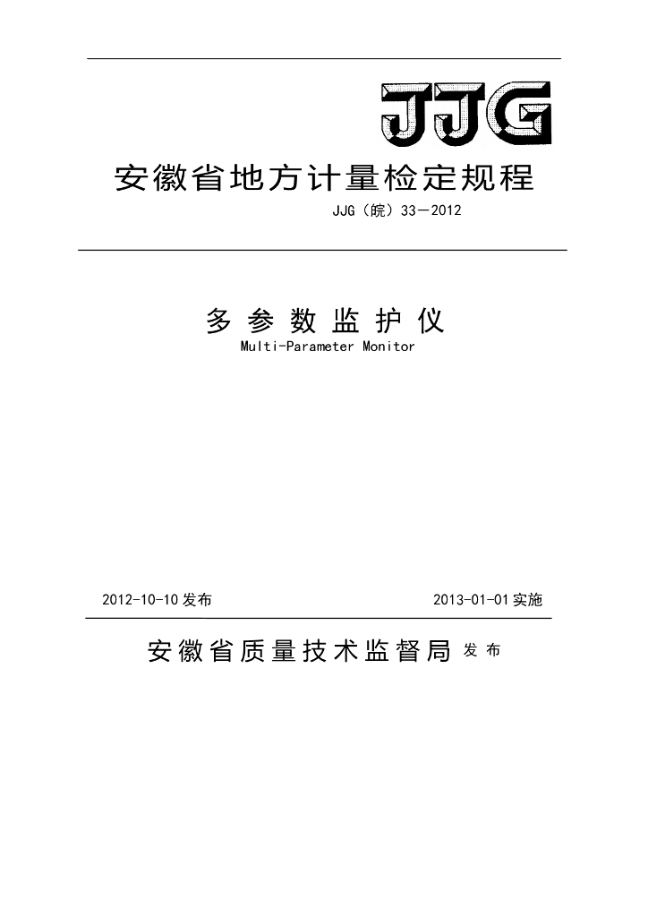 JJG(皖)33-2012 多参数监护仪检定规程