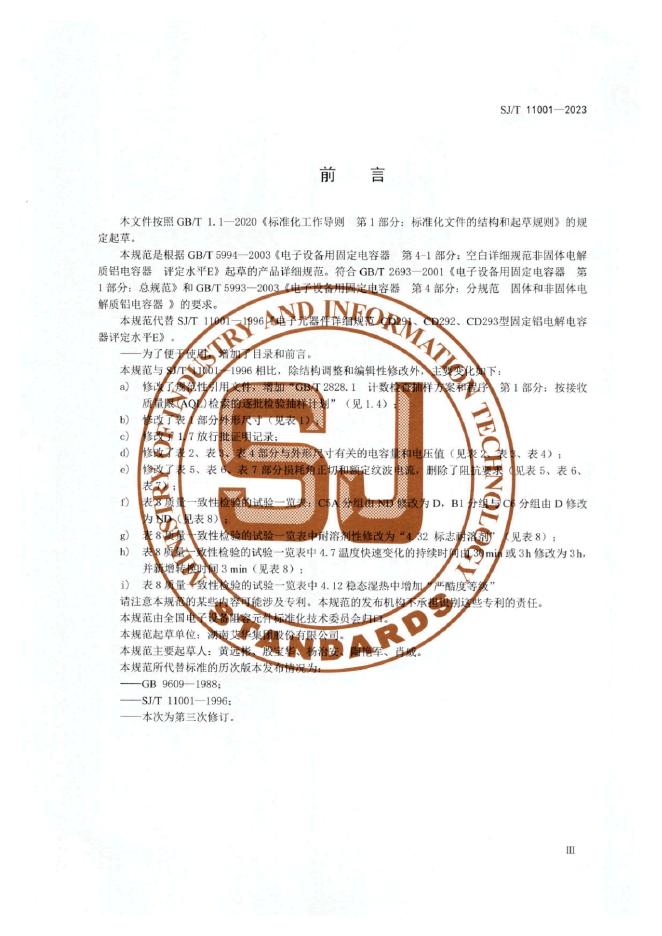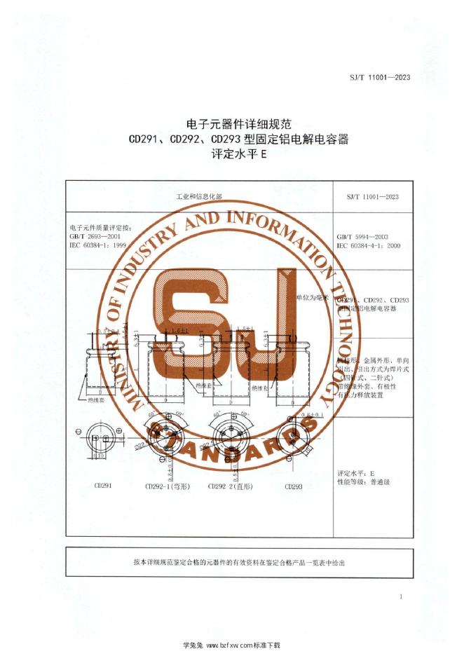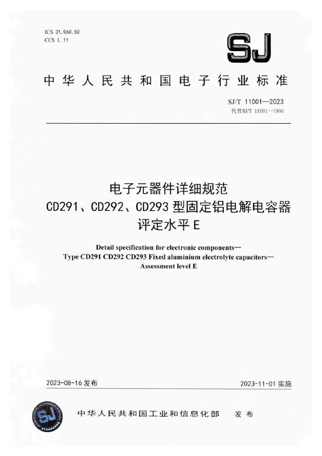 SJ/T 11001-2023 电子元器件详细规范 CD291、CD292、CD293 型固定铝电解电容器 评定水平E