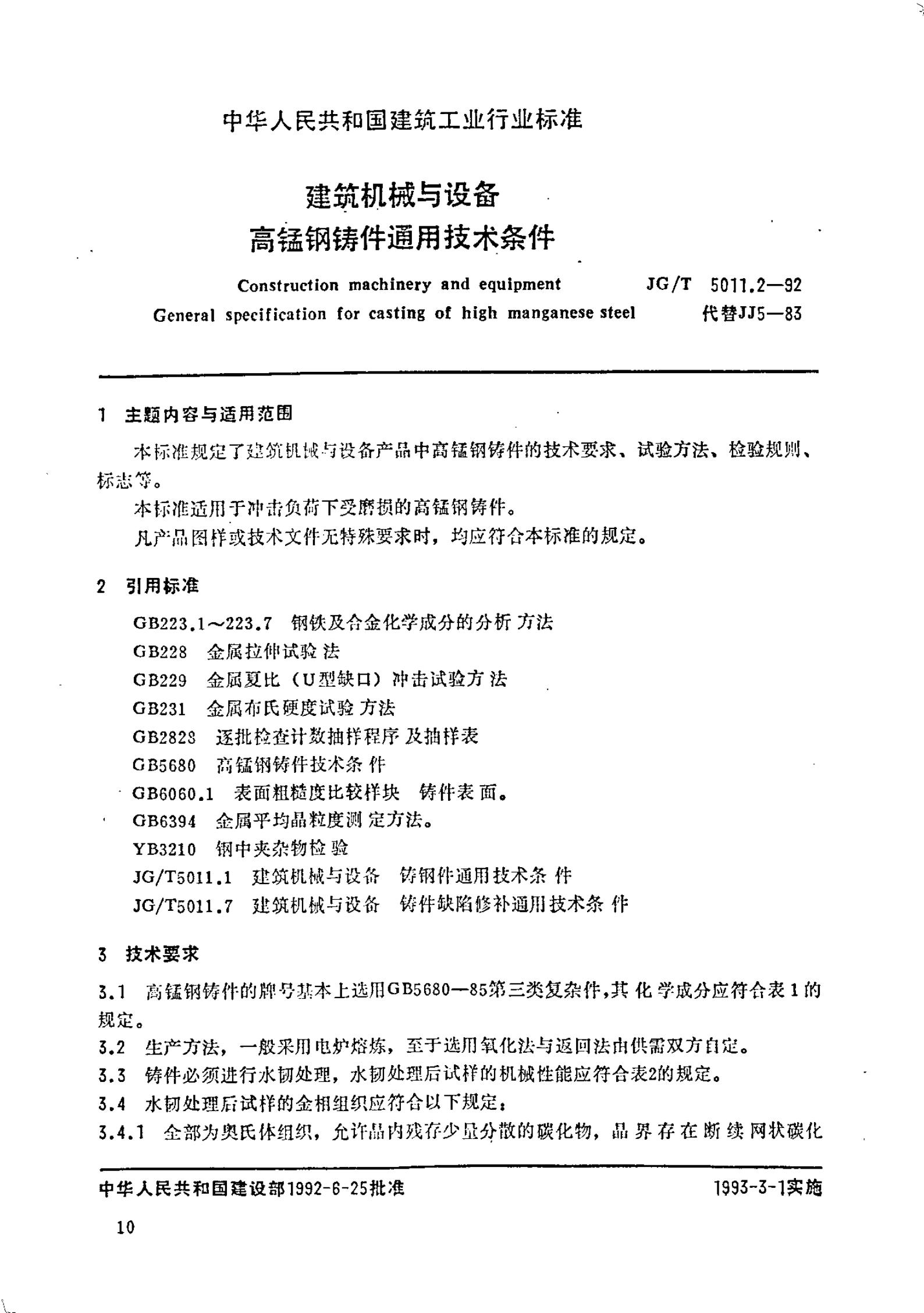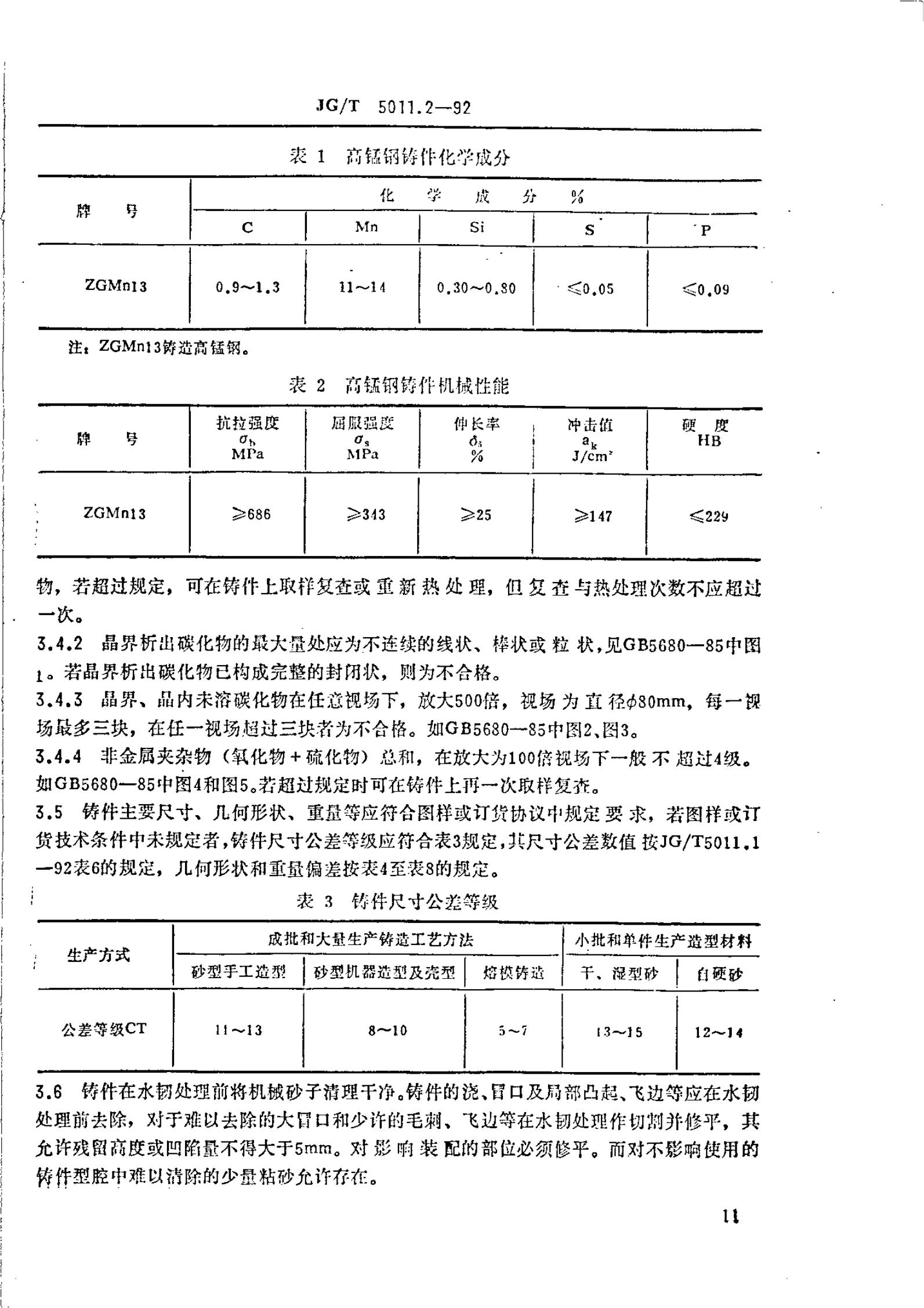 JG/T 5011.2-1992 建筑机械与设备高锰钢件通用技术条件