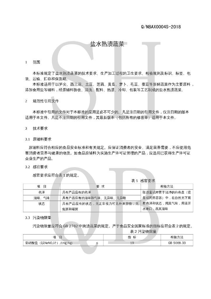 Q/NBAX 0004S-2018 盐水熟渍蔬菜