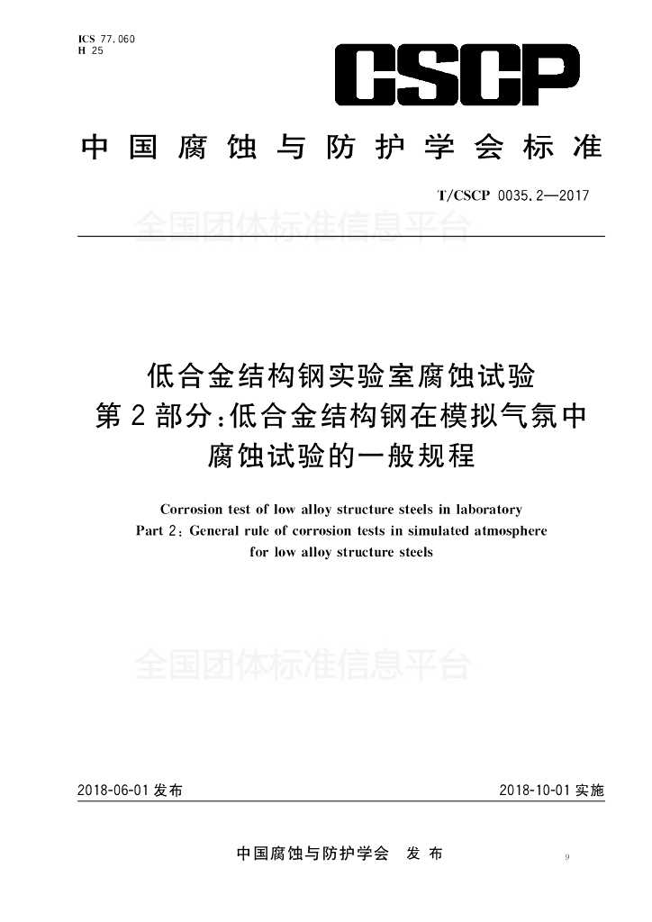 T/CSCP 0035.2-2017 低合金结构钢实验室腐蚀试验 第2部分:低合金结构钢在模拟气氛中腐蚀试验的一般规程