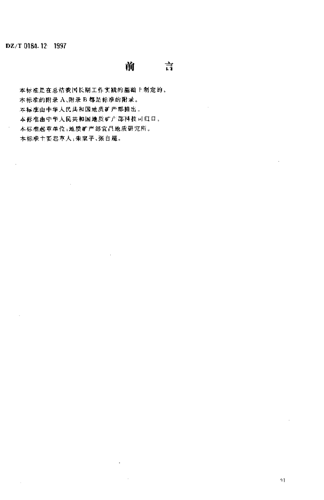 DZ/T 0184.12-1997 岩石、矿物中微量铅的同位素组成的测定