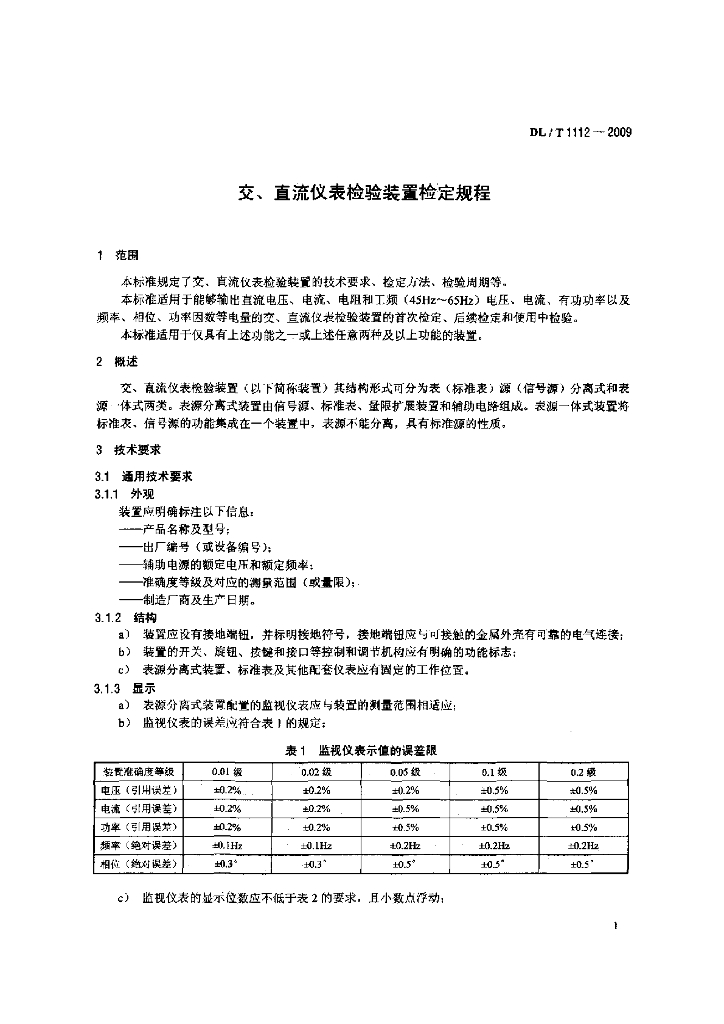 DL/T 1112-2009 交、直流仪表检验装置检定规程