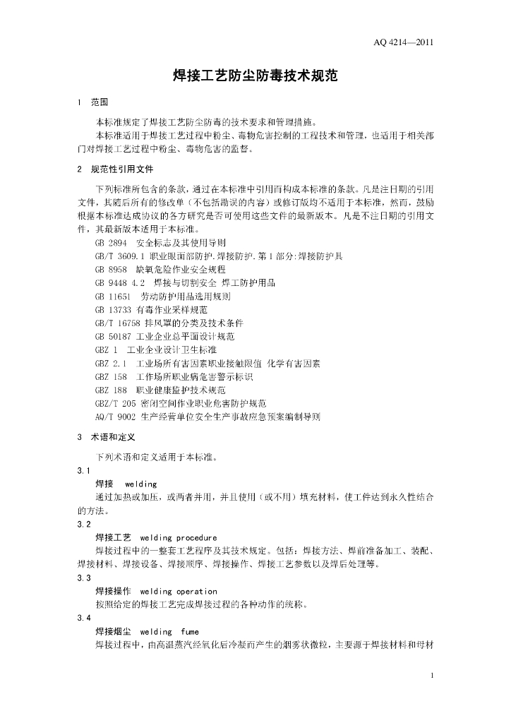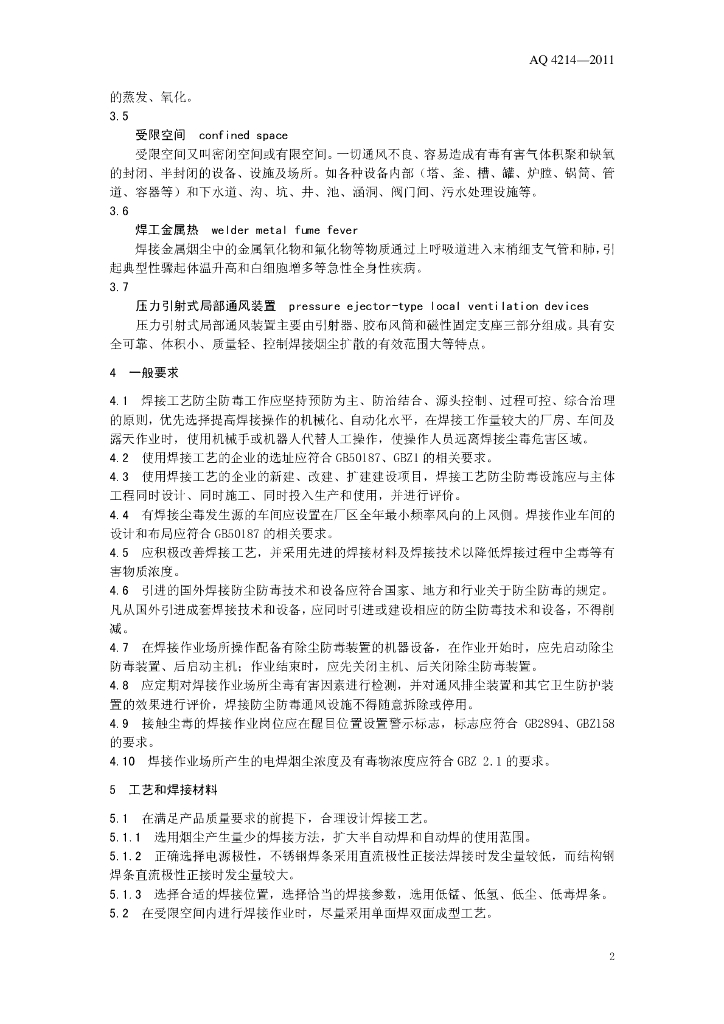 WS 706-2011 焊接工艺防尘防毒技术规范