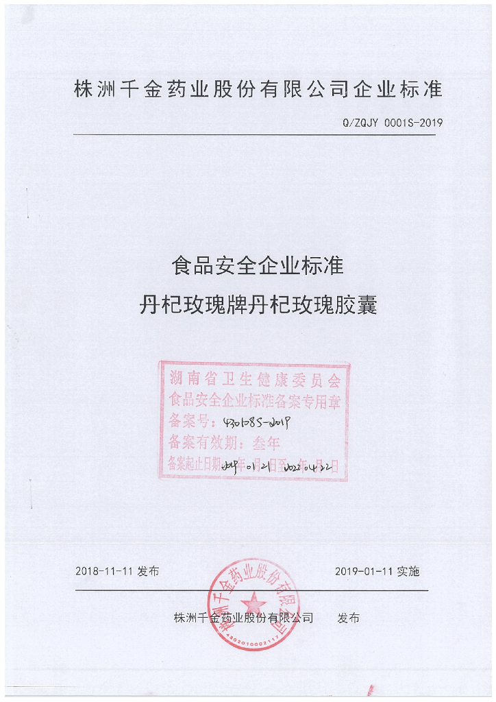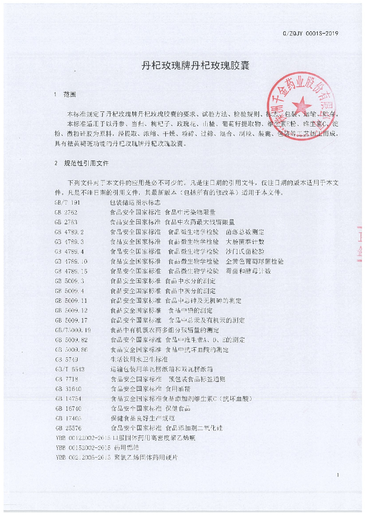 Q/ZQJY 0001S-2019 丹杞玫瑰牌丹杞玫瑰胶囊