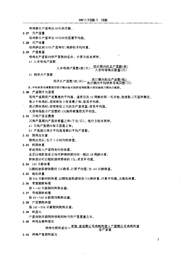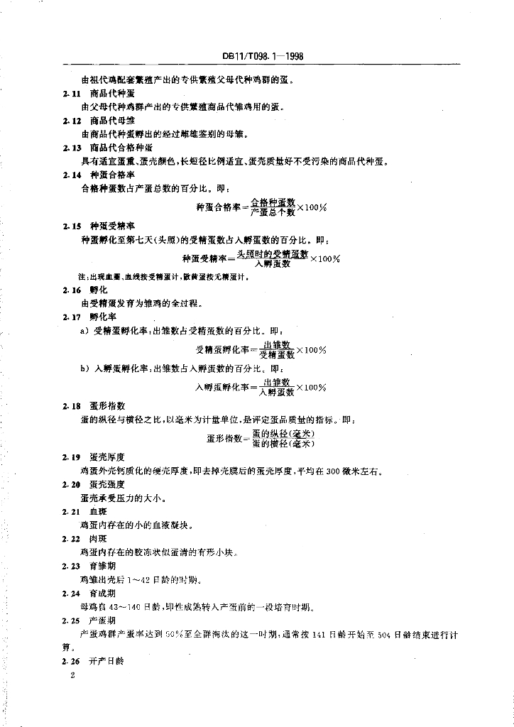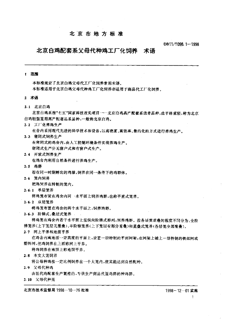 DB11/T 098.1-1998 北京白鸡配套系父母代种鸡工厂化饲养 术语