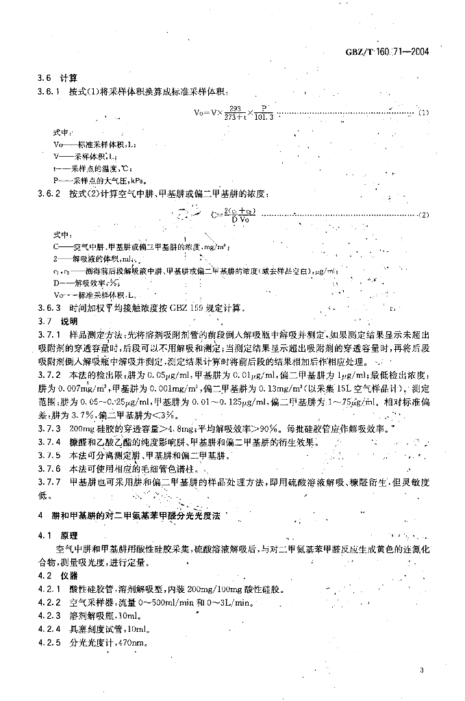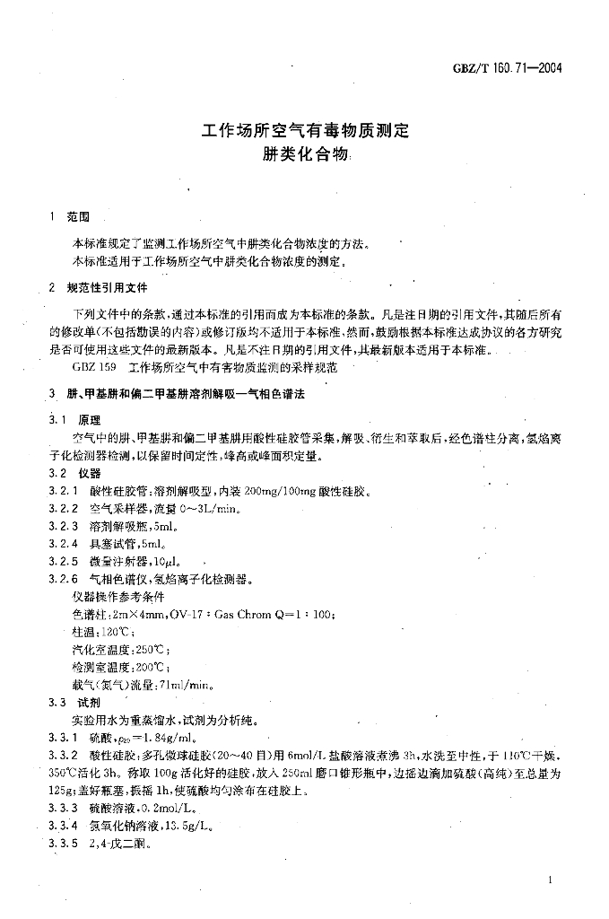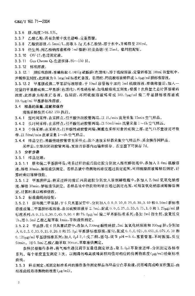 GBZ/T 160.71-2004 工作场所空气有毒物质测定 肼类化合物