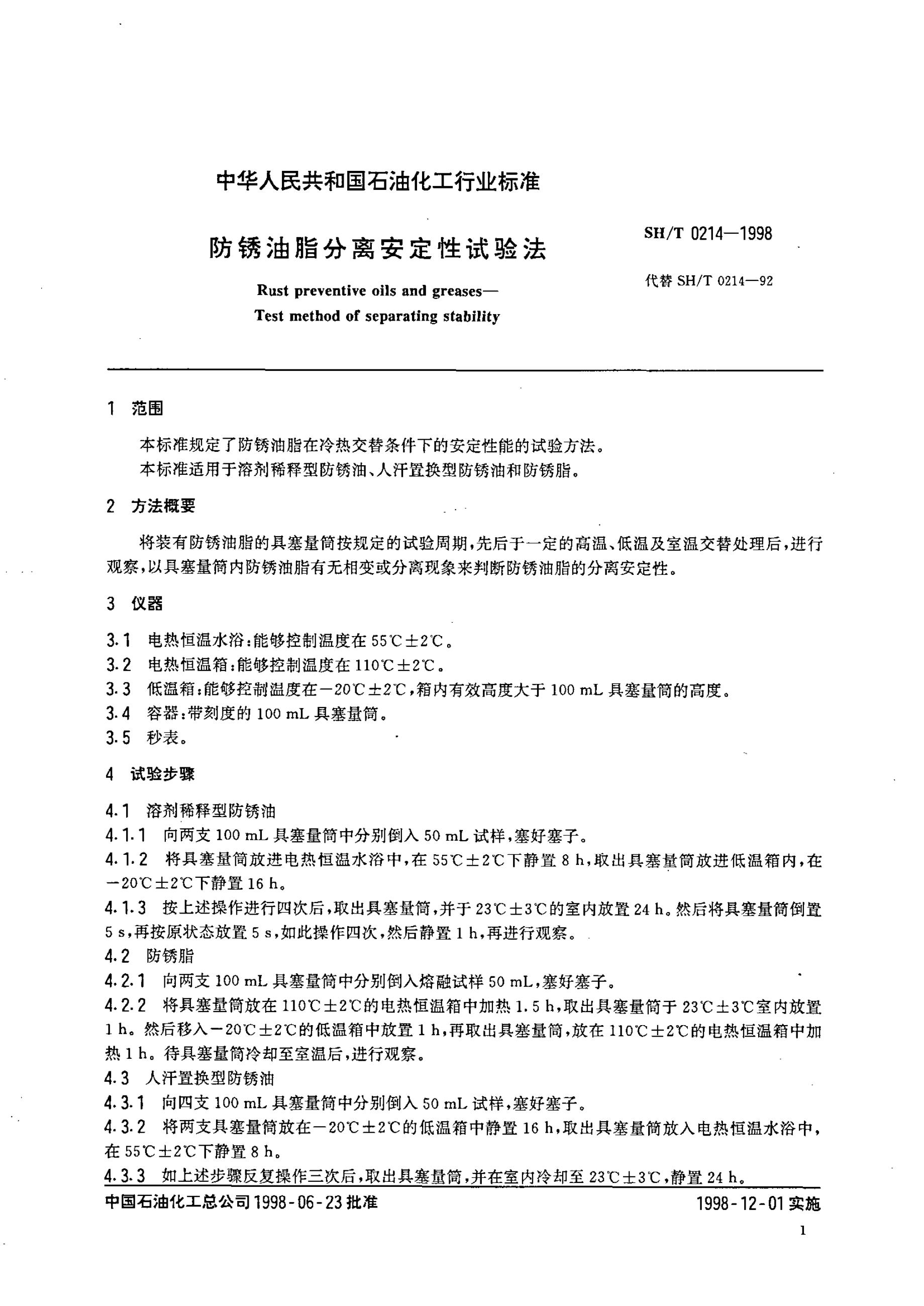 SH/T 0214-1992 防锈油脂分离安定性试验法