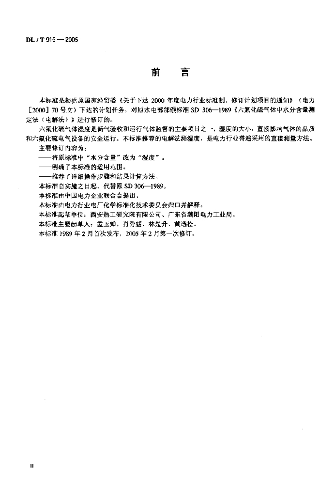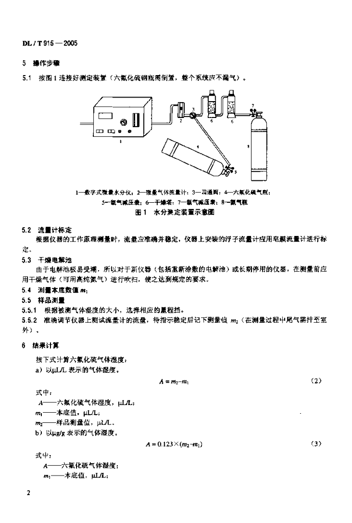 DL/T 915-2005 六氟化硫气体湿度测定法(电解法)