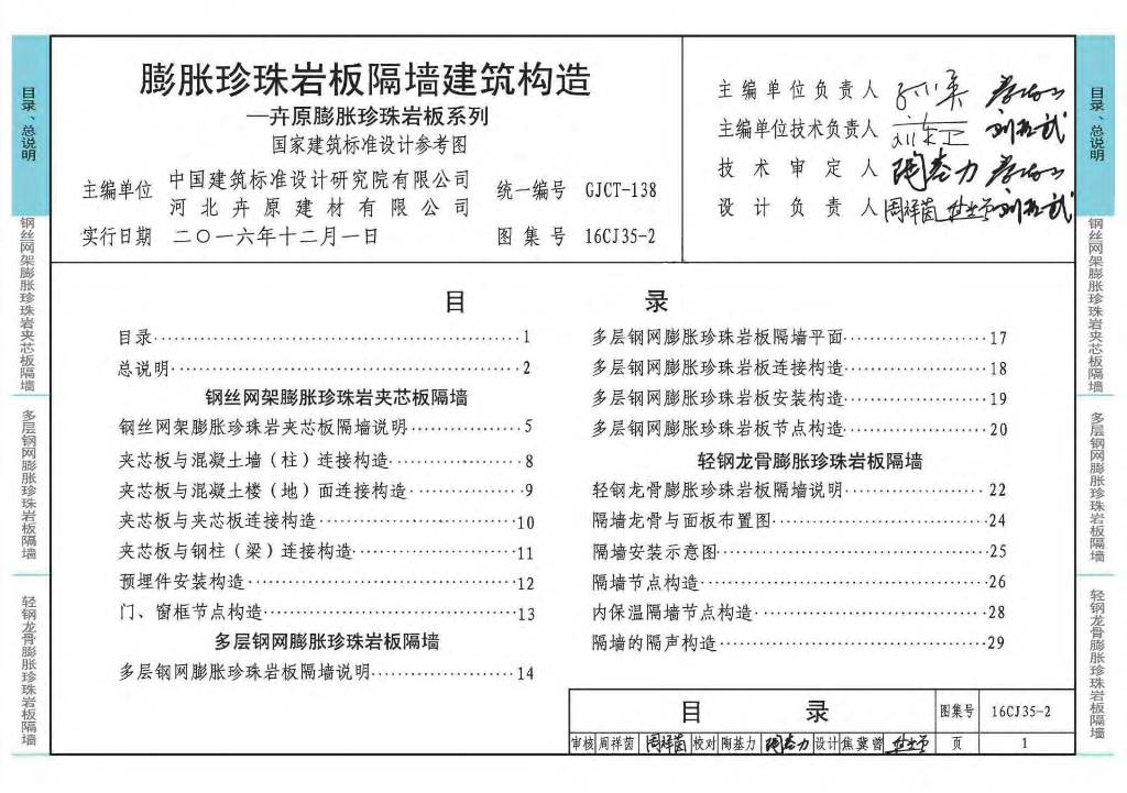 16CJ35-2 膨胀珍珠岩板隔墙建筑构造——卉原膨胀珍珠岩板系列参考图集