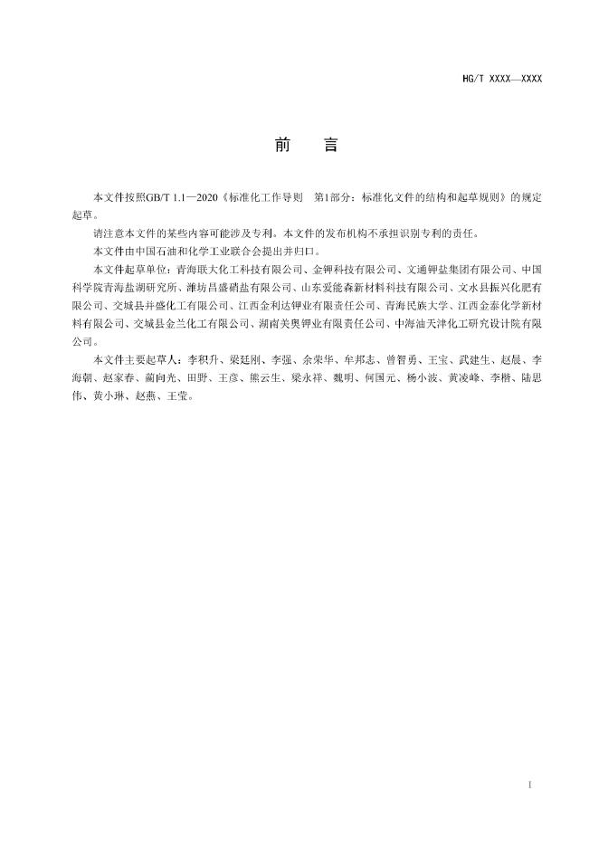 青海联大化工科技有限公司、金钾科技有限公司、文通钾盐集团有限公司、中国科学院青海盐湖研究所、潍坊昌盛硝盐有限公司、山东爱能森新材料科技有限公司、文水县振兴化肥有限公司、交城县并盛化工有限公司、江西金利达钾业有限责任公司、青海民族大学、江西金泰化学新材料有限公司、交城县金兰化工有限公司、湖南美奥钾业有限责任公司、中海油天津化工研究设计院有限公司