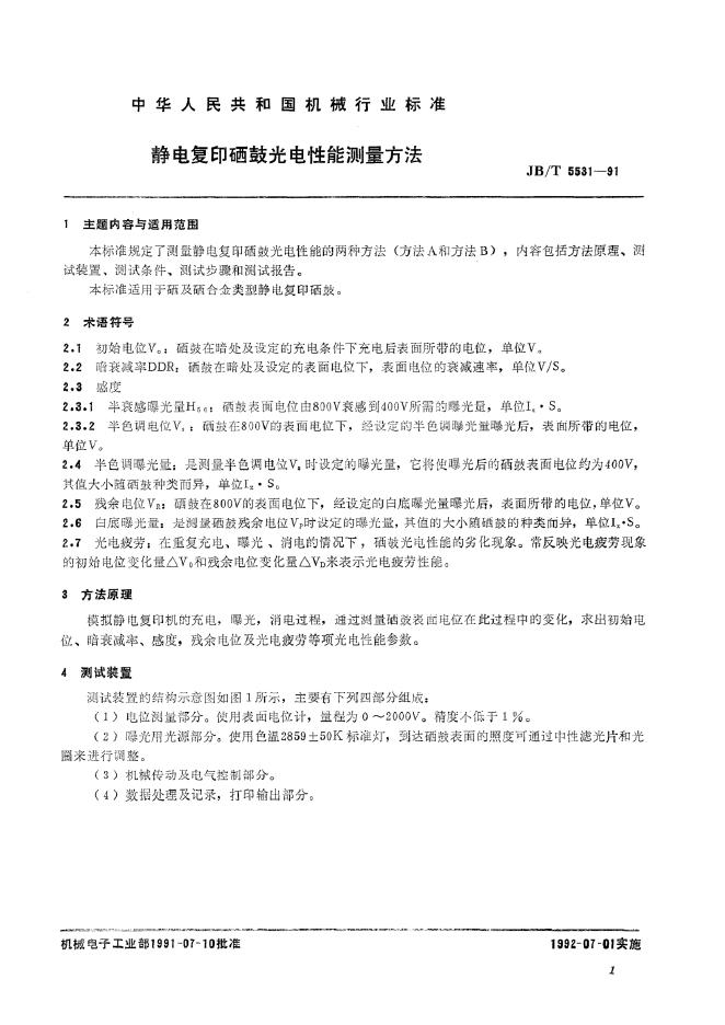 JB/T 5531-1991 静电复印硒鼓光电性能测量方法
