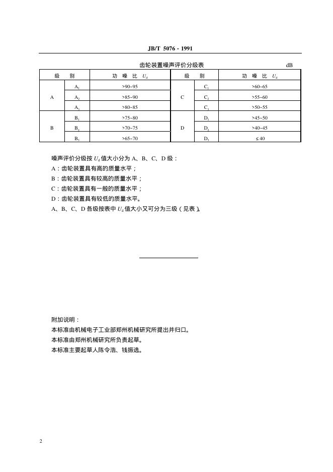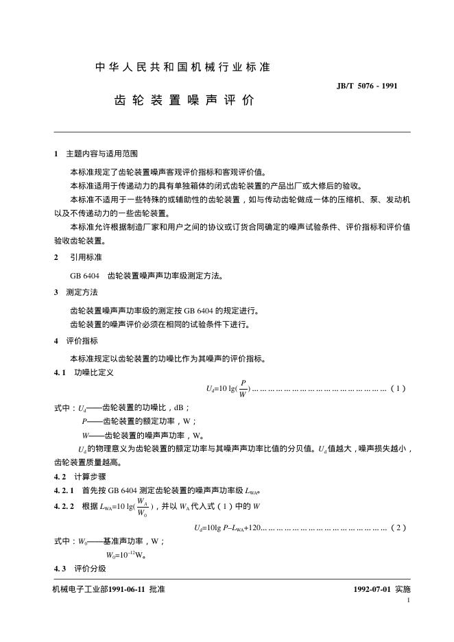 JB/T 5076-1991 齿轮装置 噪声评价
