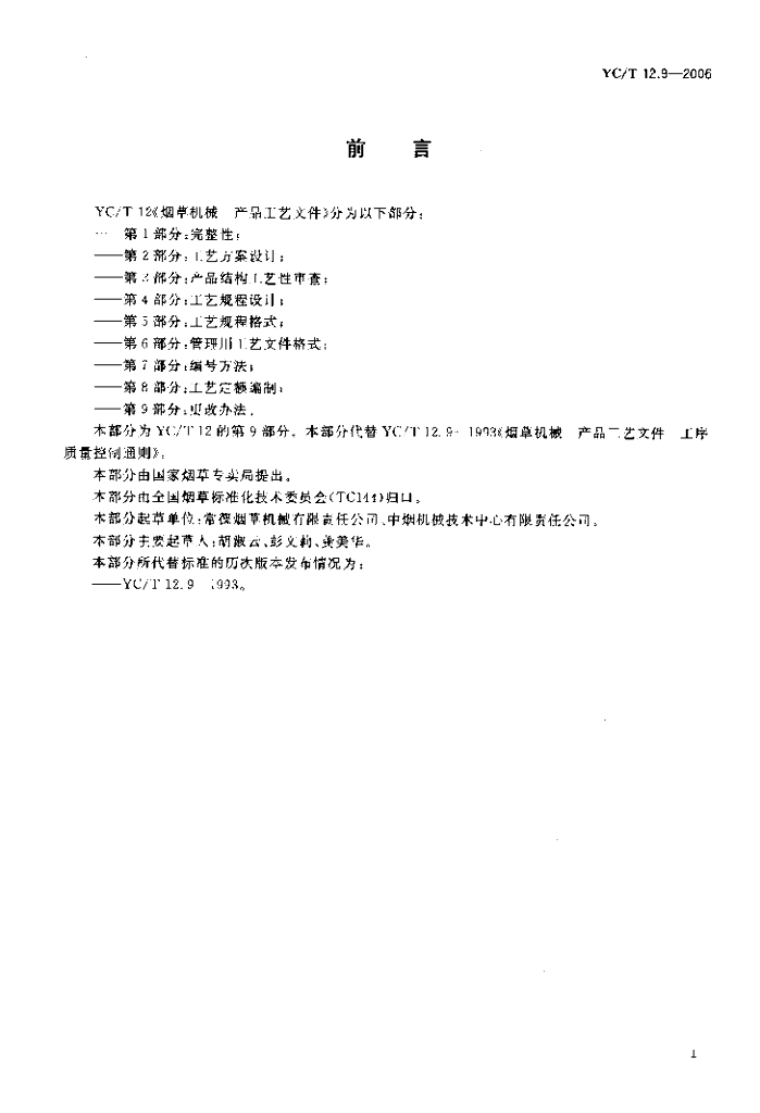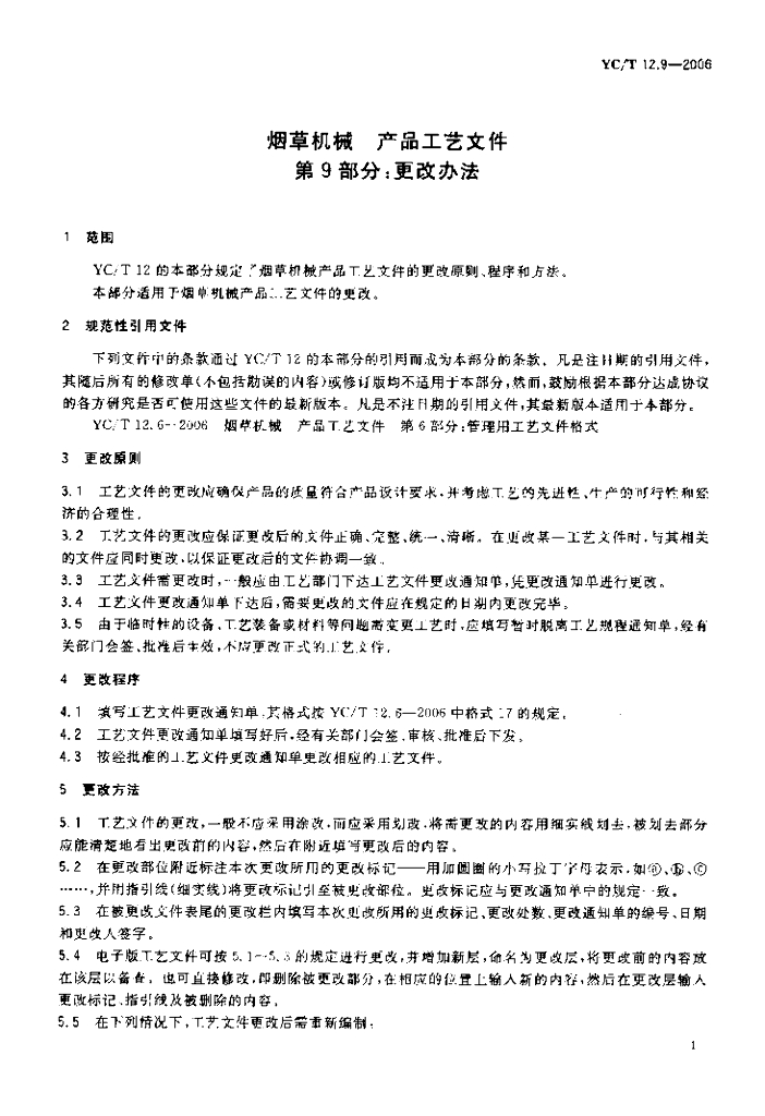 YC/T 12.9-2006 烟草机械 产品工艺文件 第9部分更改办法