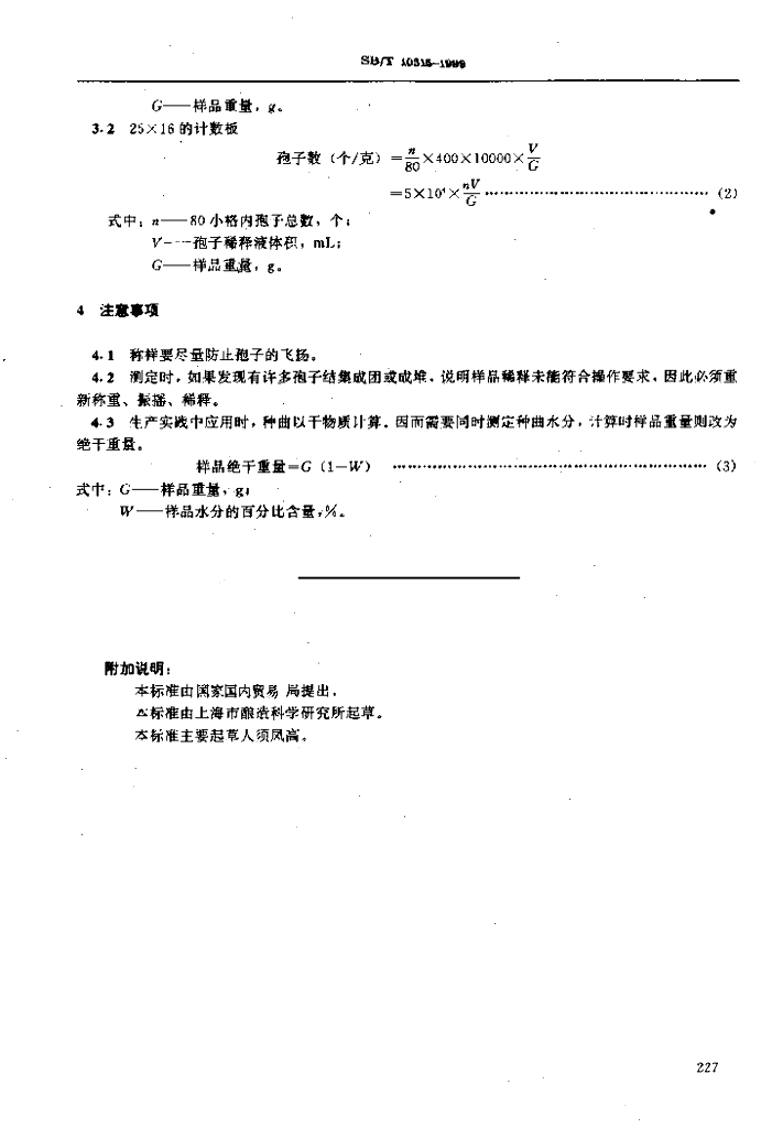 SB/T 10315-1999 孢子数测定法