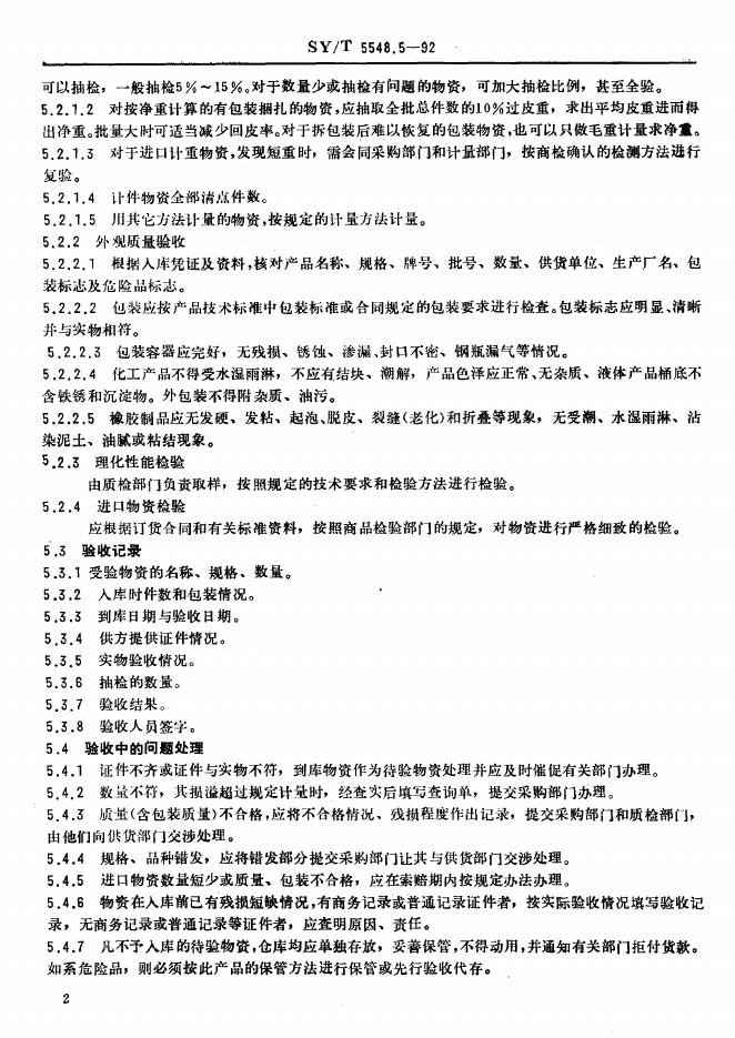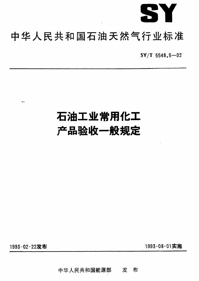 SY/T 5548.5-1992 石油工业常用化工产品验收一般规定