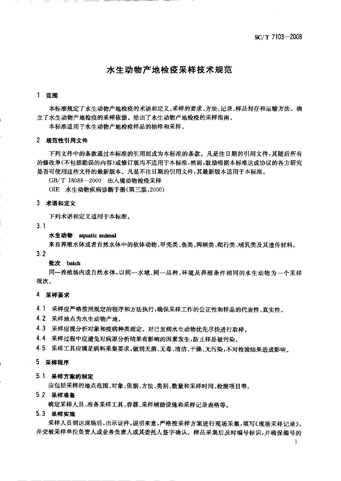 SC/T 7103-2008 水生动物产地检疫采样技术规范