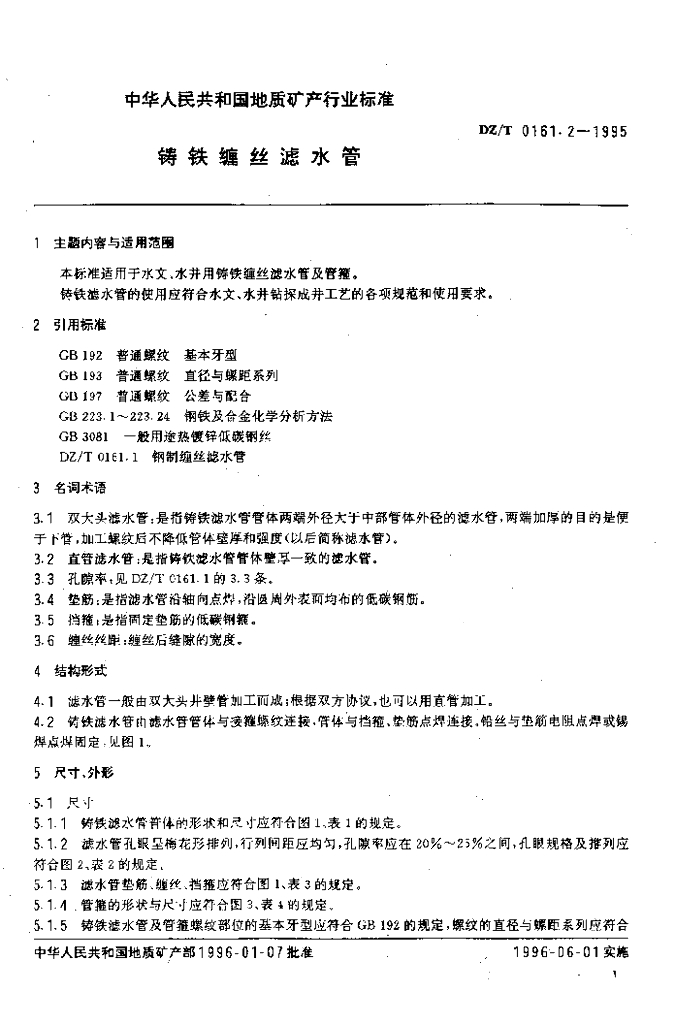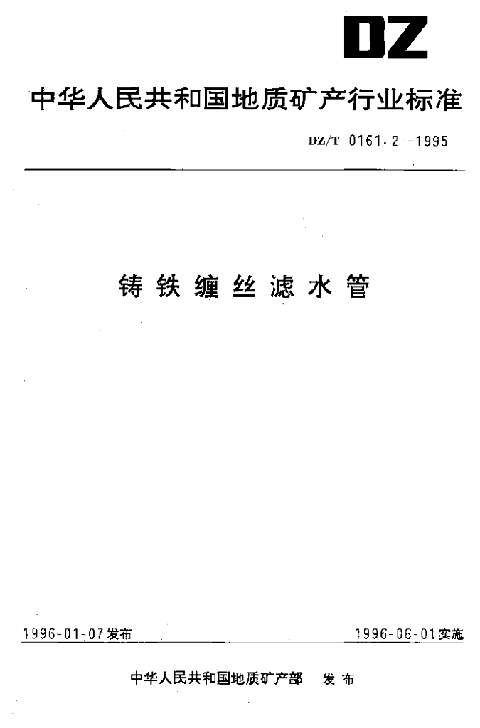 DZ/T 0161.2-1995 铸铁缠丝滤水管